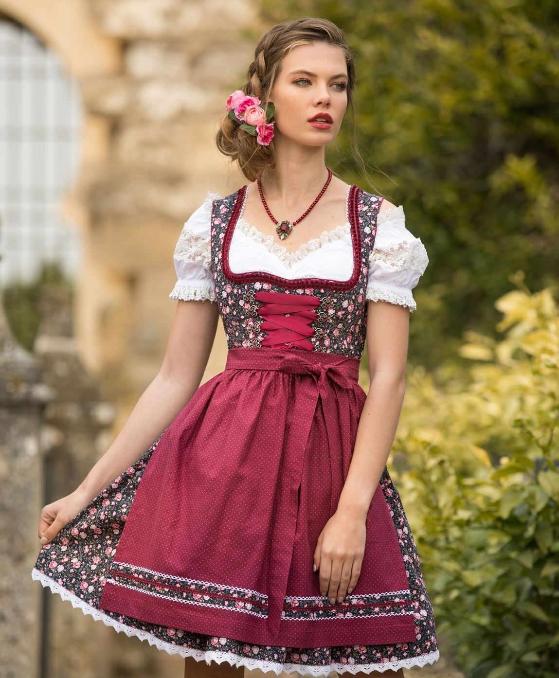 Dirndl-Sets in kräftigen, lustigen Farben wie Pink, Orange, Blau bis hin zum eleganten Dirndl in Schwarz kombiniert mit leuchtenden Farben in Türkis oder Bordeauxe und Lila. Sehr beliebt bei jungen Damen sind natürlich sexy kurze Dirndl in 50er bis Midi-Dirndl 70er Länge -kombiniert mit süßen Trachten-Accessoires – und schon fertig ist die kesse Dirndl-Prinzessin.
