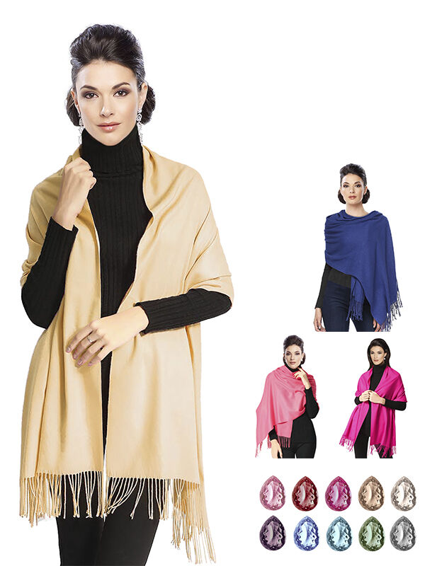 Herrlich softe, leichte Pashmina-Cashmere Stola mit Soft-Touch - wunderbar weich umschmeichelt sie die Silhouette mit GeschmeidigkeitPure Natur-Qualität - purer Komfort...hohe Wertigkeit zum günstigen, erschwinglichen Preis!Herrlich weiche Pashmina Stola in hochwertigem Natur-Gewebe -das bringt Glanz und den richtigen Touch in Ihr Outfit. Abmessungen: 176 cm - Breite 70 cm (ohne Fransen)50% Kaschmir, 20% Modal, 30% PolyamidFarben: diverse Farben