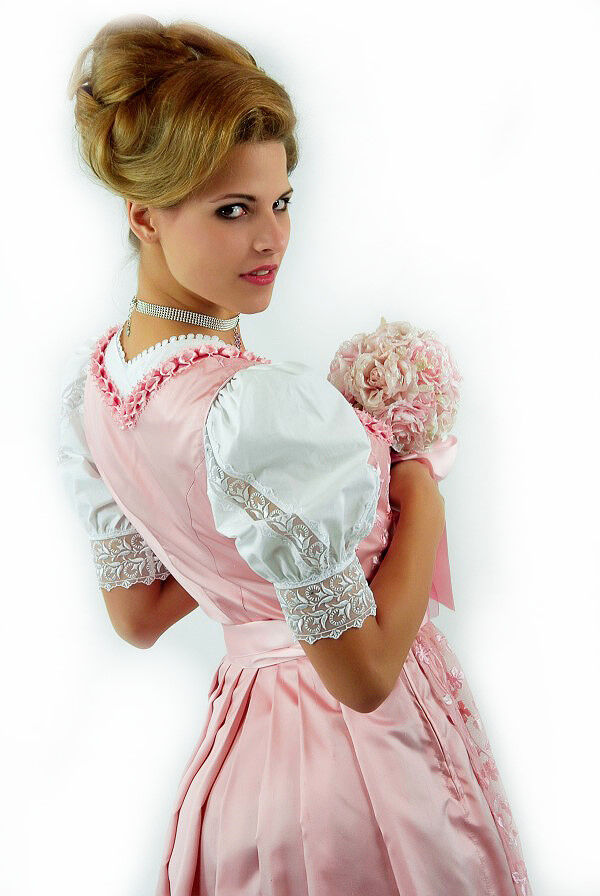 Dirndl-Mieder verschnürt oder mit silbernen Knöpfen, feine Seidenstoffe beim Dirndl gepaart mit dezenten, edlen Dirndlschürzen erinnern uns an traditionelle Vorlagen und trotzdem wirkt das Gesamtbild wertvoll und keineswegs übertrieben, auch wenn gerne edel glitzernde Strass-Effekte oder Gold-Stickereien als Blickfang beim festlichen Dirndl eingesetzt werden. Hochwertige Seiden--Jacquards, erlesene Brokatstoffe und weich fließende Seidenqualitäten bereichern das Erscheinungsbild in dieser festlichen Dirndl-Mode.