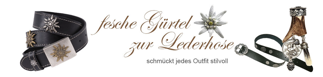 Prachtvolle Trachtengürtel sind in der Trachtenmode ein Muss. Ob traditionsreich in edlem Antik-Leder mit schönen Köppel-Schnallen und Bayrische Wappensymbolen oder Trachtengürtel verziert mit alten Münzen, Edelweiß oder Charivaris – zur Trachtenlederhose getragen sorgt er einfach für ein nobles Understatement.