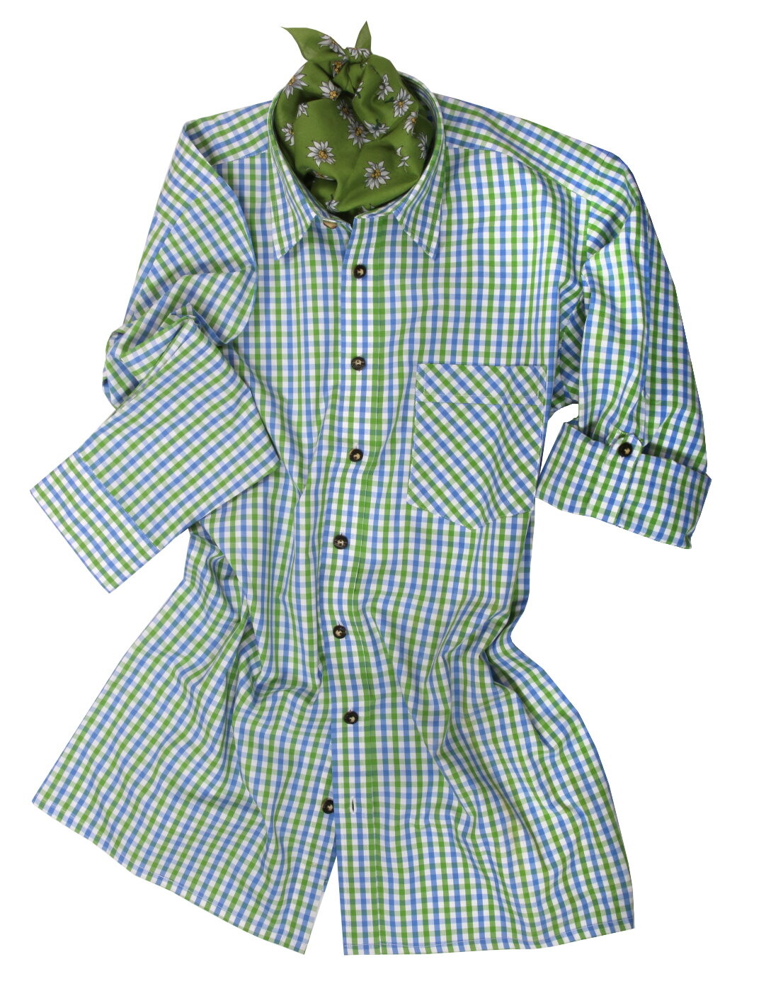 PREMIUM Trachtenhemd kariert Grün-Blau "easy care bügelfrei"