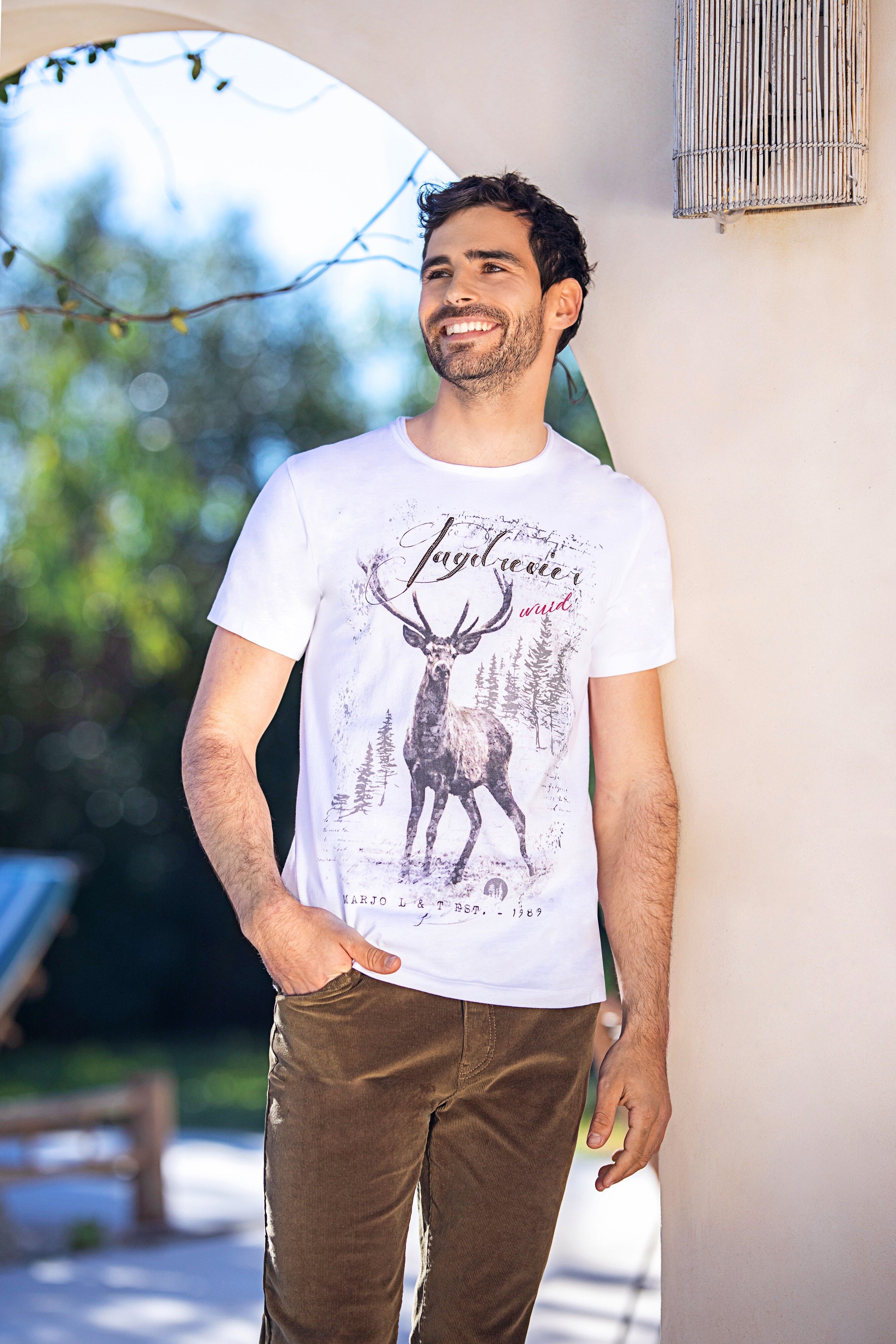 Trachtenshirt mit Hirsch-Print in komfortabler BaumwolleHauptsache cool! Shirt mit attraktivem Hirsch-Print als totaler Hingucker - genau das Richtige für Burschen die "auf der Pirsch" sind...