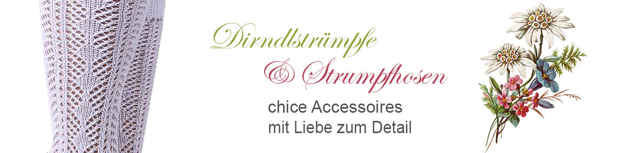 Schöne Trachtenstrümpfe in hochwertigen Natur-Qualitäten. Auch im Damen-Trachtenbereich sind Trachtenstrümpfe ein beliebtes Accessoires. Zum Dirndl gibt es schöne Strümpfe mit feinen Ajour-Mustern. Edle Strümpfe in Weiß sind schmückende Elemente für jedes Dirndl – auch hier spielen die Farben- und Formenvielfalt eine wichtige Rolle.